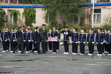 张颖校长检阅军训方队